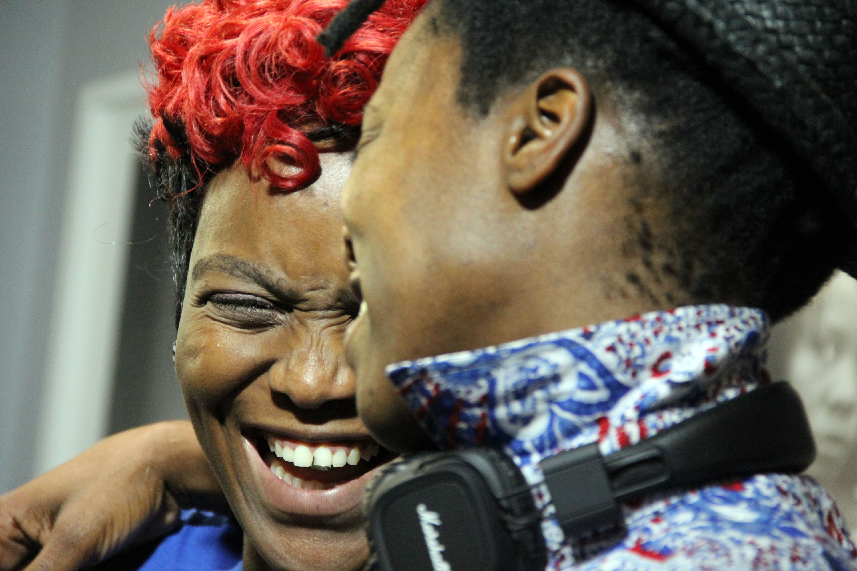 L-R: Ayanda Magoloza one of the participants in the series sharing a good laughter with the visual activist/ photographer, Zanele Muholi.