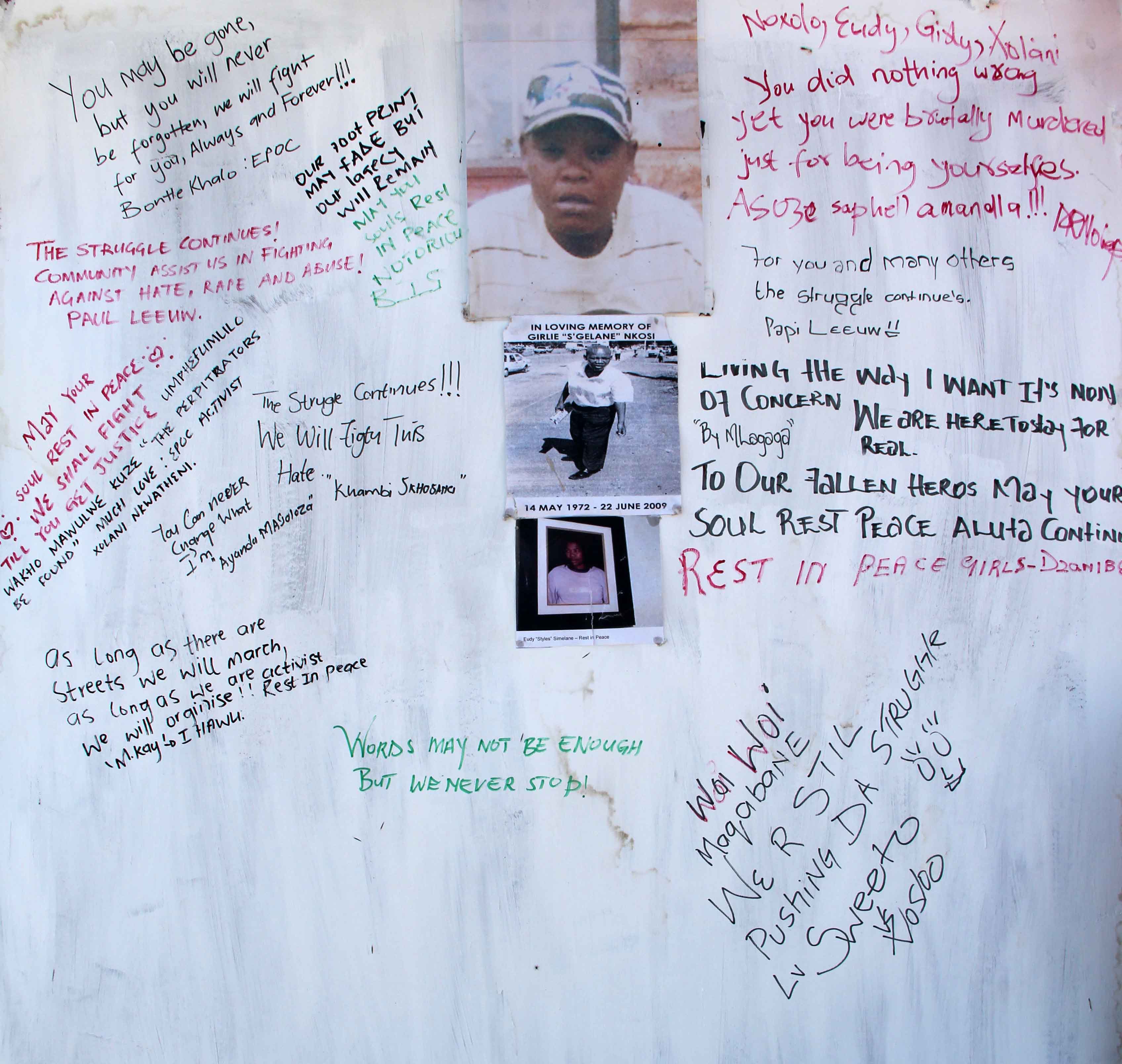 We handed over a memorandum to the safety MEC at the Kwa-Thema police station in 2011, there has been no response since” says Khalo. Her experience is no different from that of Dikeledi Sibanda, from the Forum for the Empowerment of Women (FEW) who is working on Nokuthula Radebe’s case. In March 2011, Nokuthula, a 20 year old lesbian was killed in a neighboring township (Thokoza) less than a month before Noxolo Nogwaza in 2011.