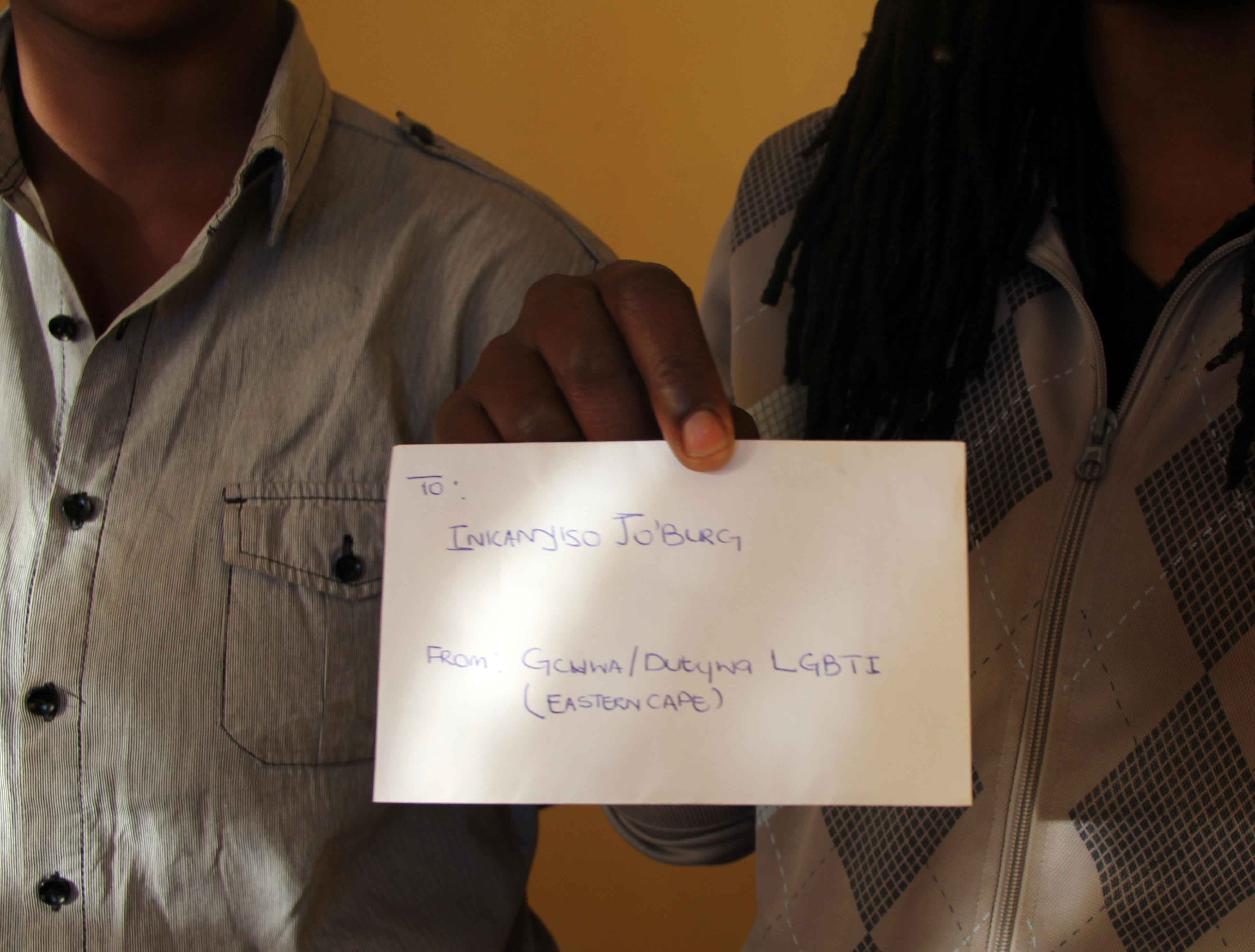 Some members of Gcuwa lesbian group handing over umnikelo to Inkanyiso crew.