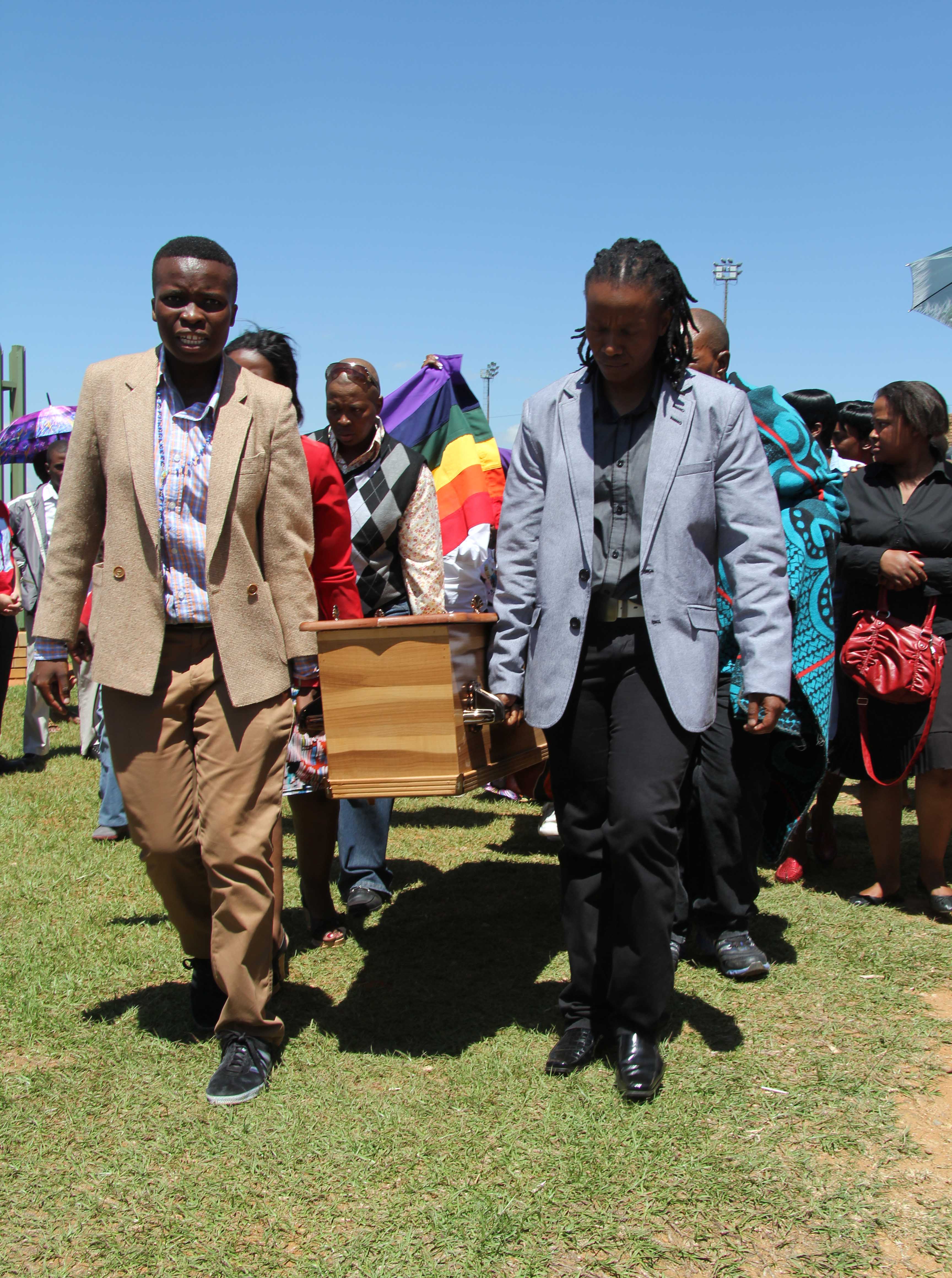 Seated in front of the late Maleshwane’s coffin is her uncle on the left and mother in the centre
