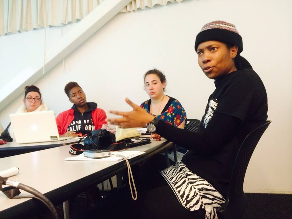 Sly speaking to a group of students in Curatorial Practice class at California College of the Arts. (2014/03/04)