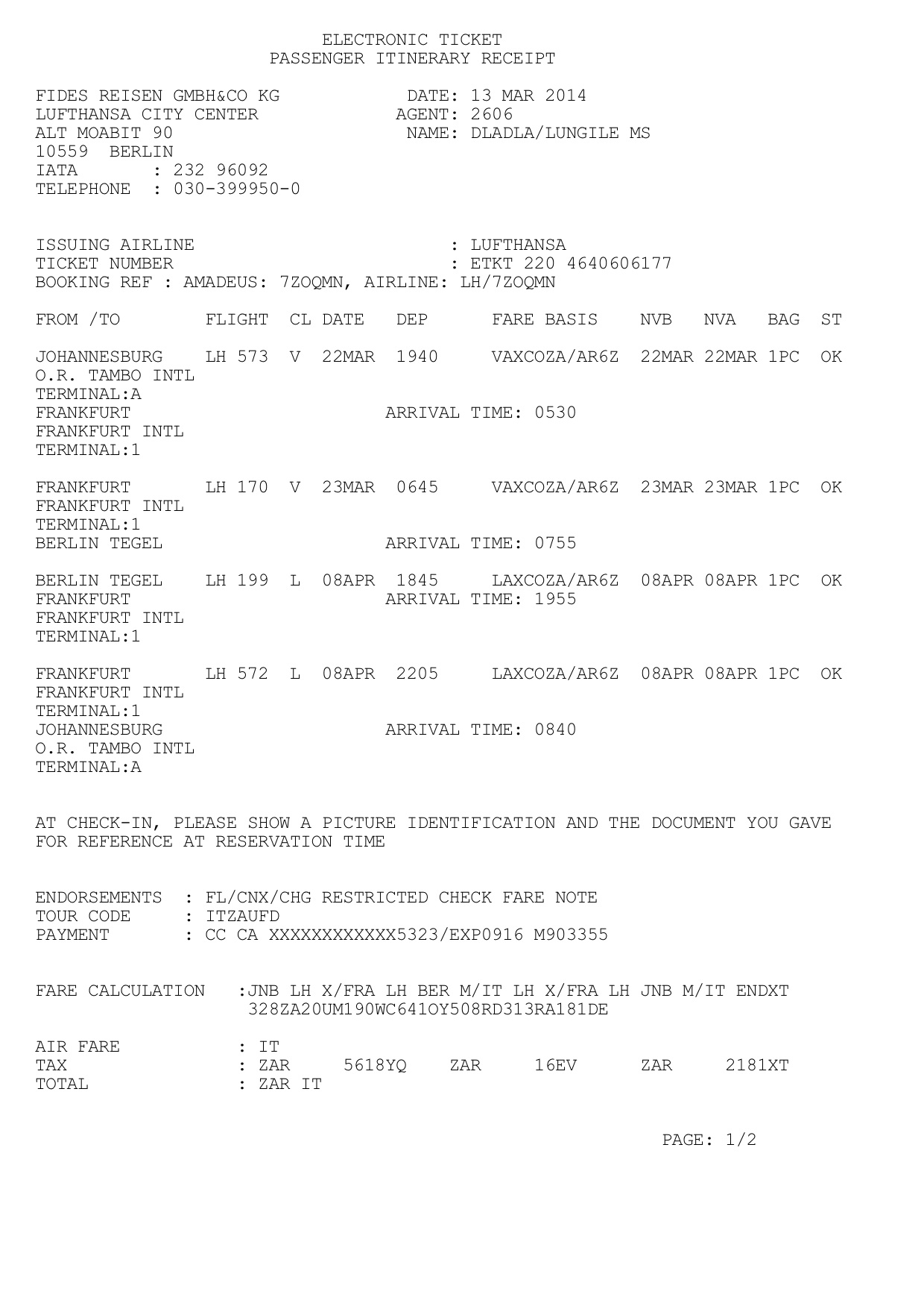 Dladla presented all the documents requested for her application: return tickets paid in full, travel insurance and a commitment from her host to cover her food and expenses in Berlin. Most importantly, she was a participant in an exhibition and was due to perform in a reputable Berlin theatre. This expectation was cruelly shattered.