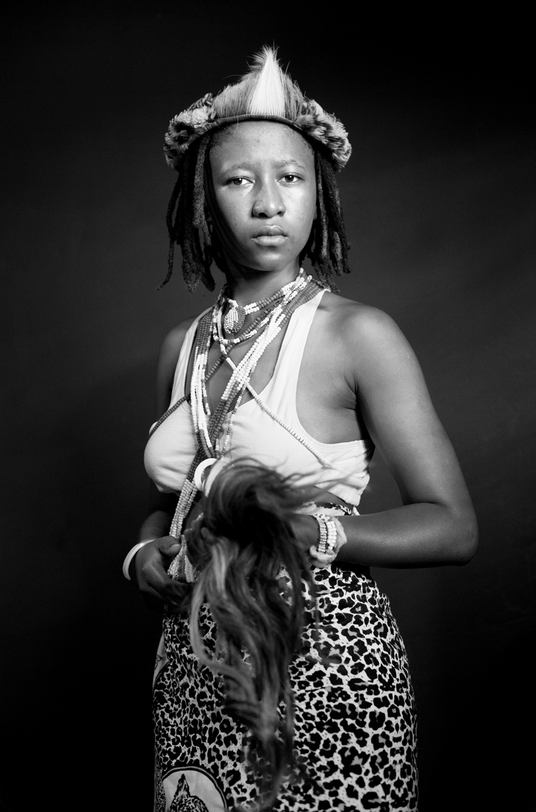 Muholi told me to relax and so I did and soon got used to it. From thereon, we took amazing portraits. In the Faces and Phases book, two of my pictures are featured, one which was taken on the day of my first shoot with Muholi and the other which was taken at my home in my bedroom while in my traditional/ancestral clothes. In my hand I carried ishoba lamadlozi. I love how my two portraits contradict each other to the viewer but I am a traditional healer as well as a musician/composer. I straddle two worlds that most people deem highly impossible to mix. They say however that I am the living proof that now can be steeped in their traditions and culture but at the same living and creating in the 21st century, a testament that both elements can exist.