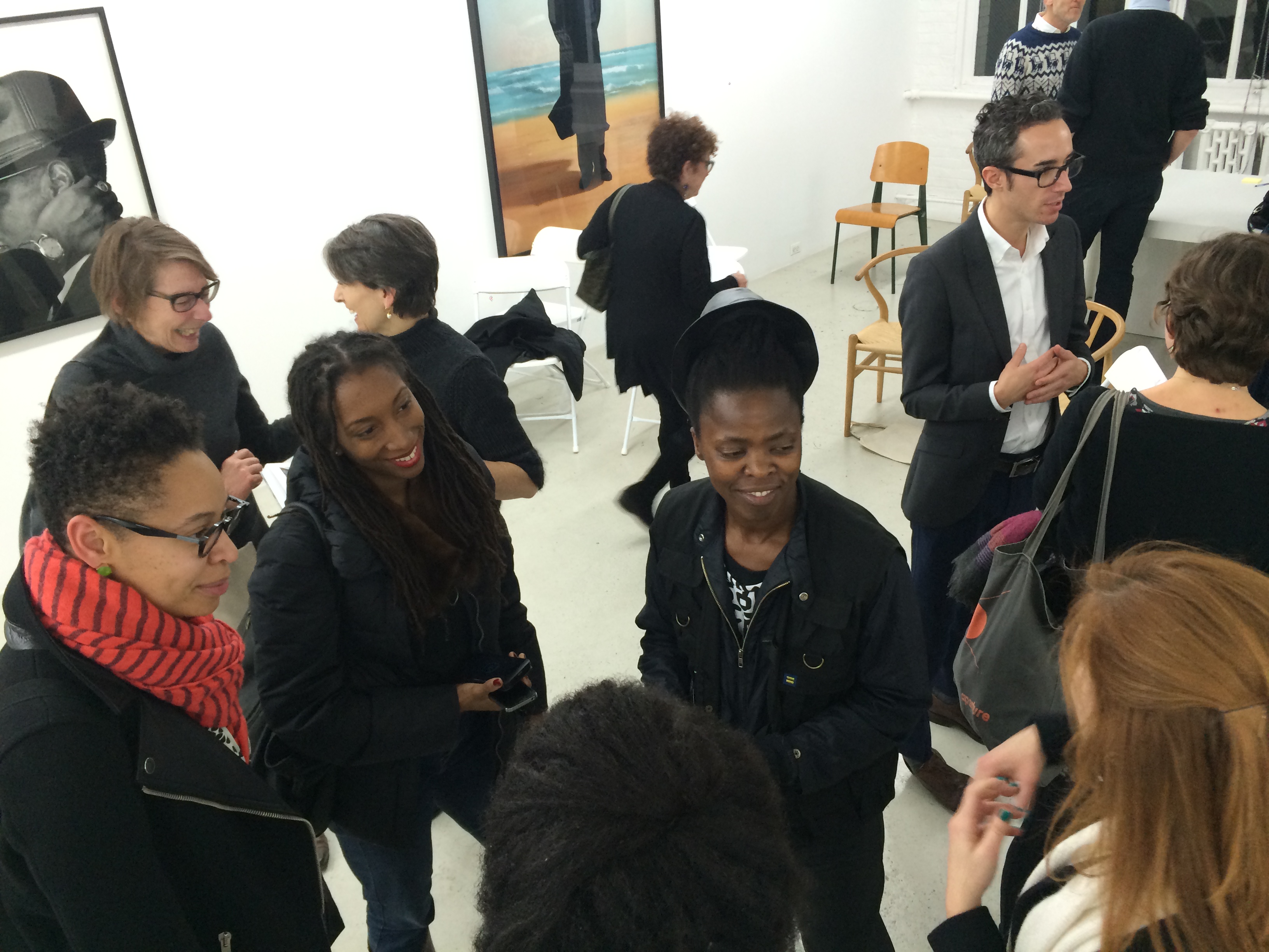 From L-R: Artur Walther (owner of Walther Collection), Yancey Richardson (owner of Yancey Richardson Gallery), Catherine Morris (Brooklyn Museum: Sackler Family Curator for the Elizabeth A. Sackler Center for Feminist Art), Zanele Muholi (photographer) and Judy Hecker (MoMA, Assistant Curator in Department of Prints and Illustrated Books).