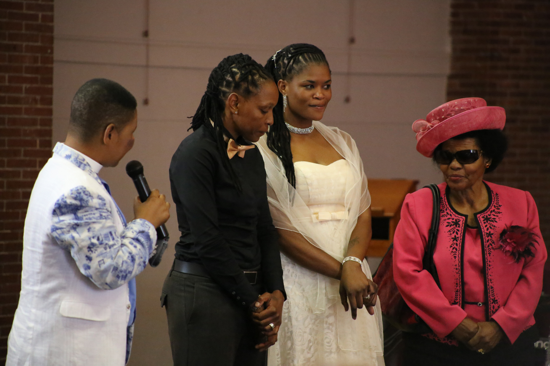 service, Zungu called Portia to come to the front, then made the announcement about the engagement and requesting for Portia to go and bring her bride to the front. While the church sang and praised, Portia, Bathini and her (Portia’s) mom walked hand-in-hand, casually walked to the front.