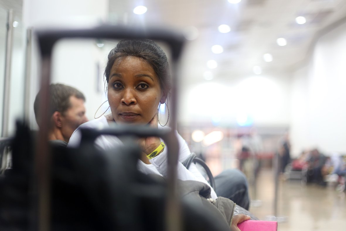 2015 Feb. 10: Shaz aka “Sicka Starban” Mthunzi was lucky enough to be accompanied by her family to the airport. Her mother is standing on the far left (wearing a yellow top).