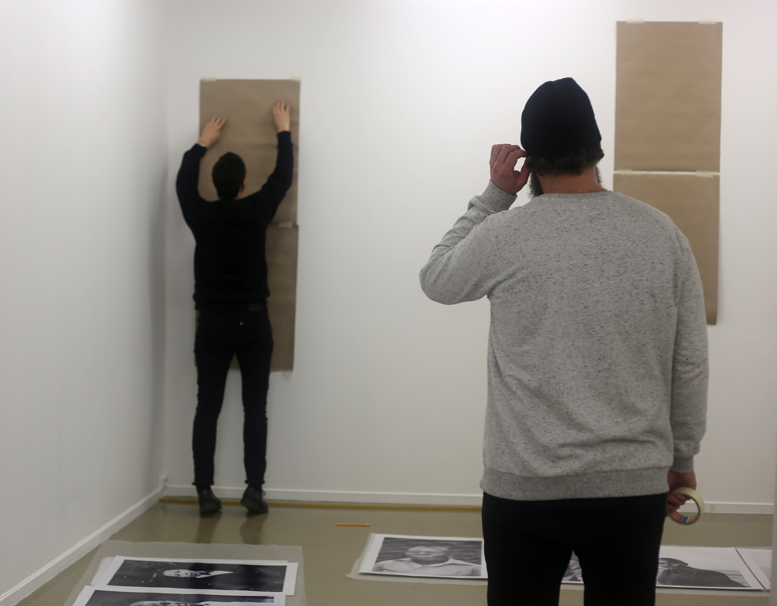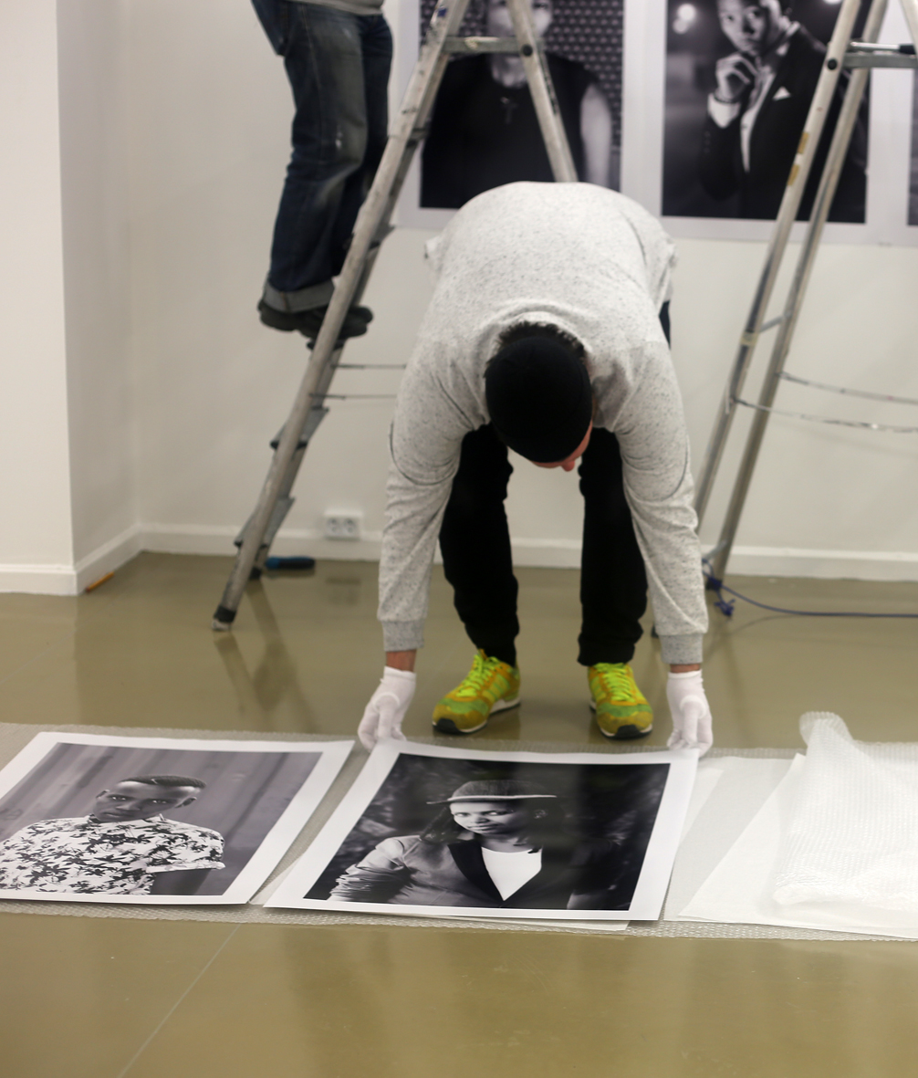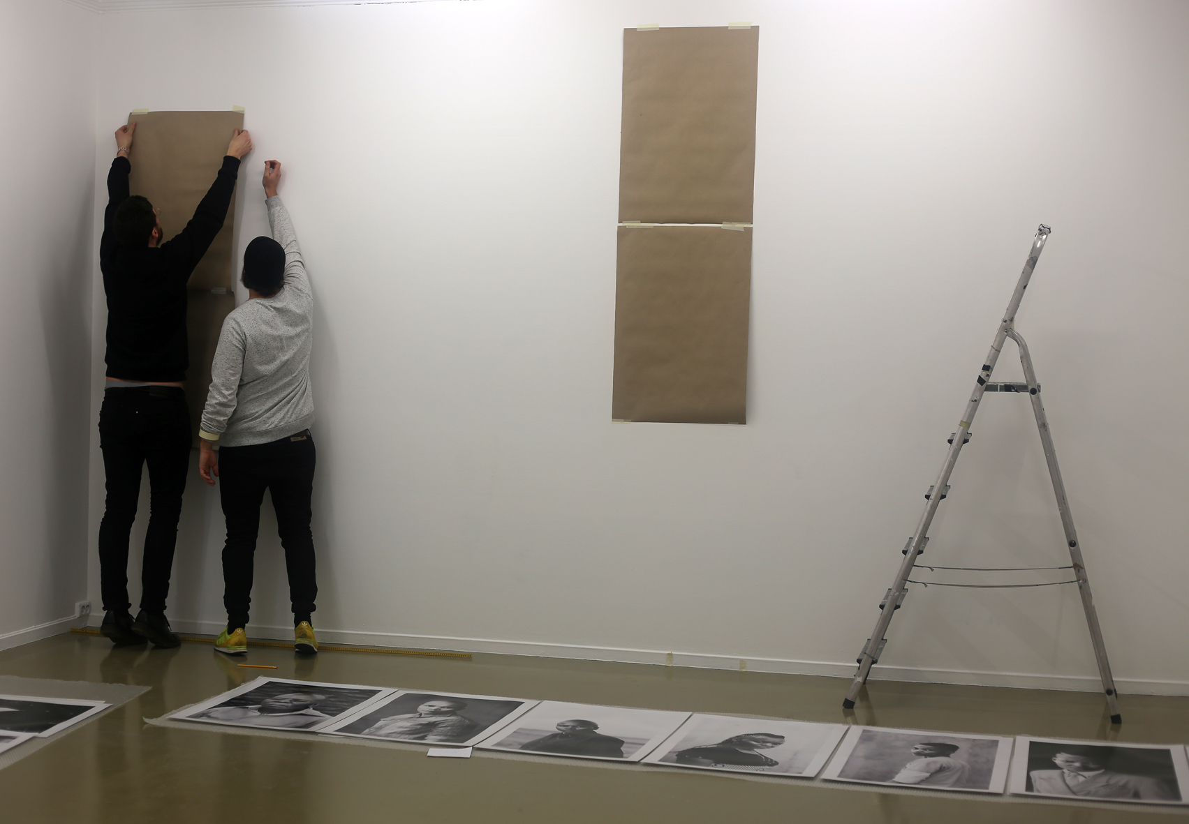 2015 Feb. 12: Day after our arrival had to come to the Art Center for installation. Here the guys are busy mounting Faces and Phases portraits on the wall…