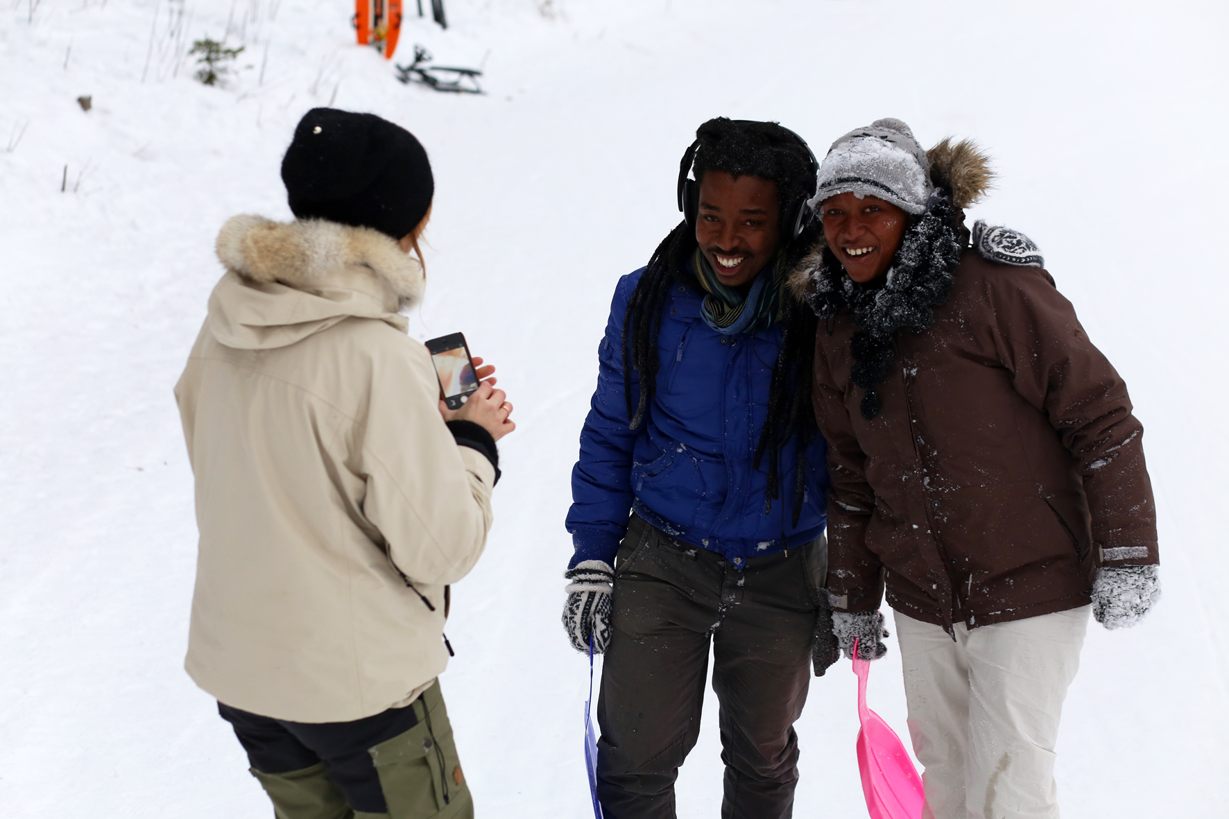 A great morning indeed. It was snowing and I was skiing day and excited because it was our first time. Rikke was kind enough to take us there with her lovely children. I enjoyed every moment when we went down the slope while Muholi and Themba captured every moment.