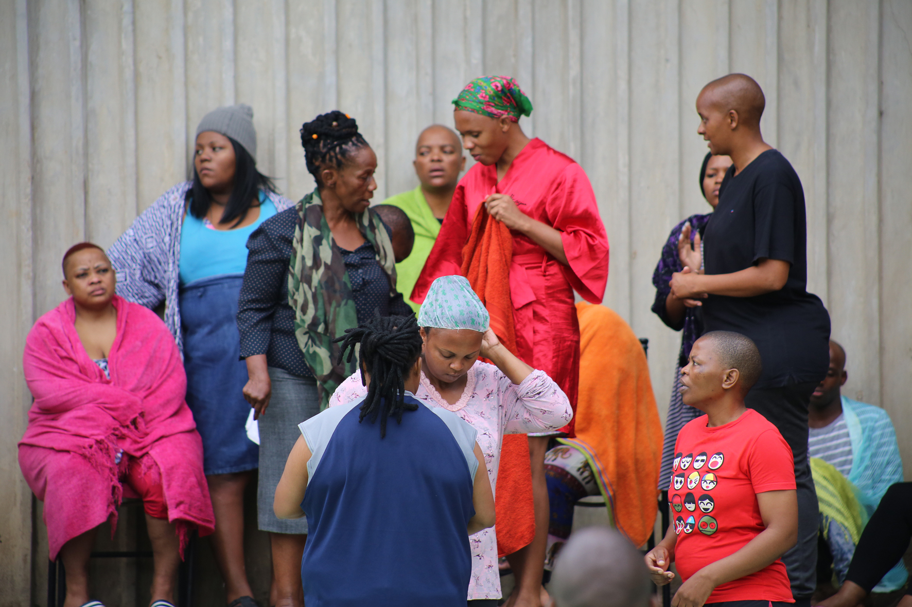 Raising her hand, praying is Zandile