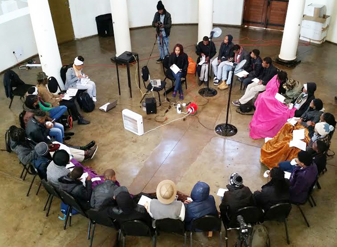 Roundtable concord: Artist Rene Mathibe shares the accomplishment of community upliftment through Art. Photo by Zanele Muholi (6/6/2015)