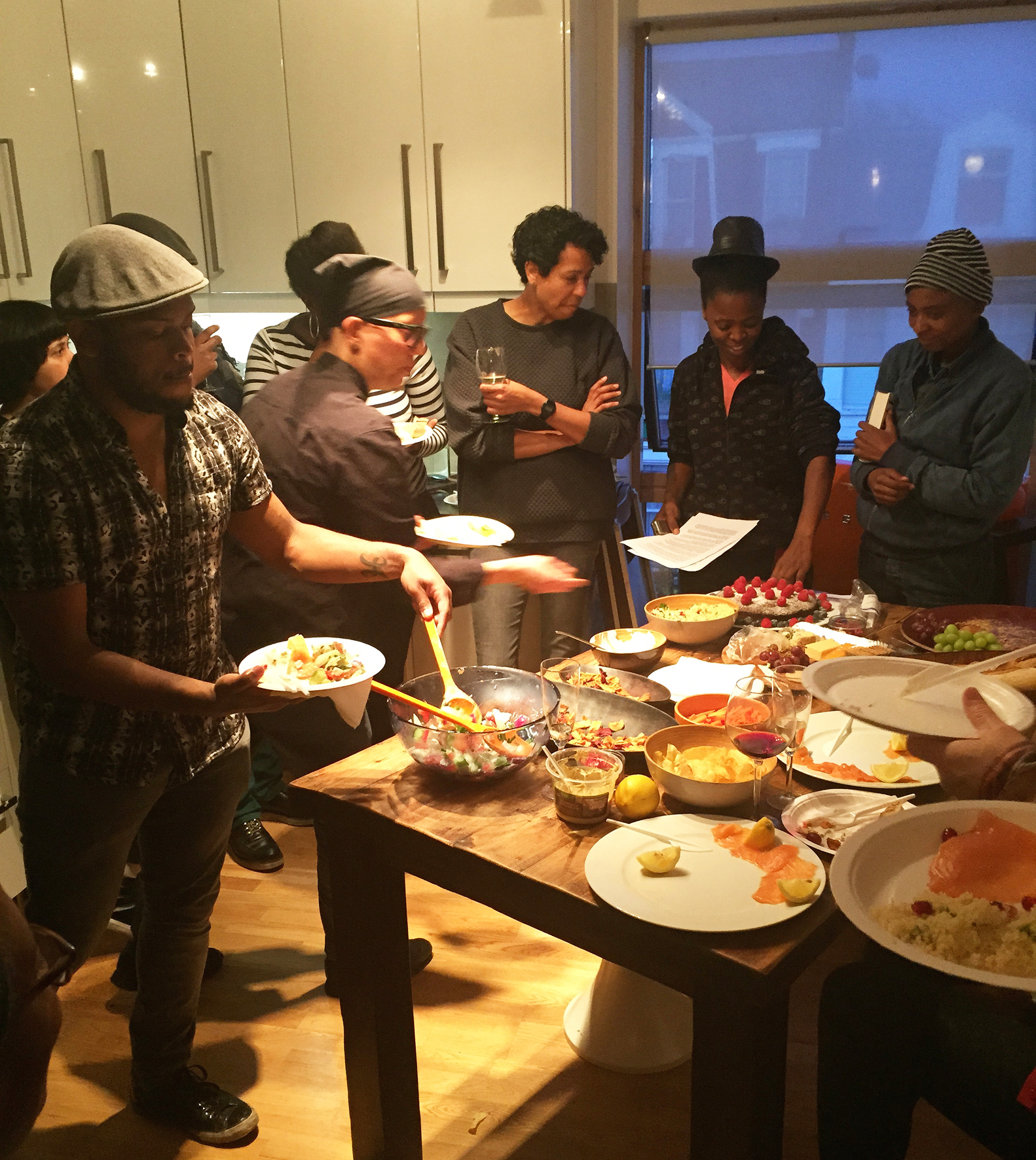 When Zanele Muholi and I arrived past 7pm, we found more than 10 people spread out in Renee’s kitchen, lounge and balcony, with their various drinks in hand and flowing conversations keeping them entertained. As we walked in and started introducing ourselves, the doorbell kept on ringing, signaling the arrival of more guests. The mood was good and relaxed and filled with laughter.