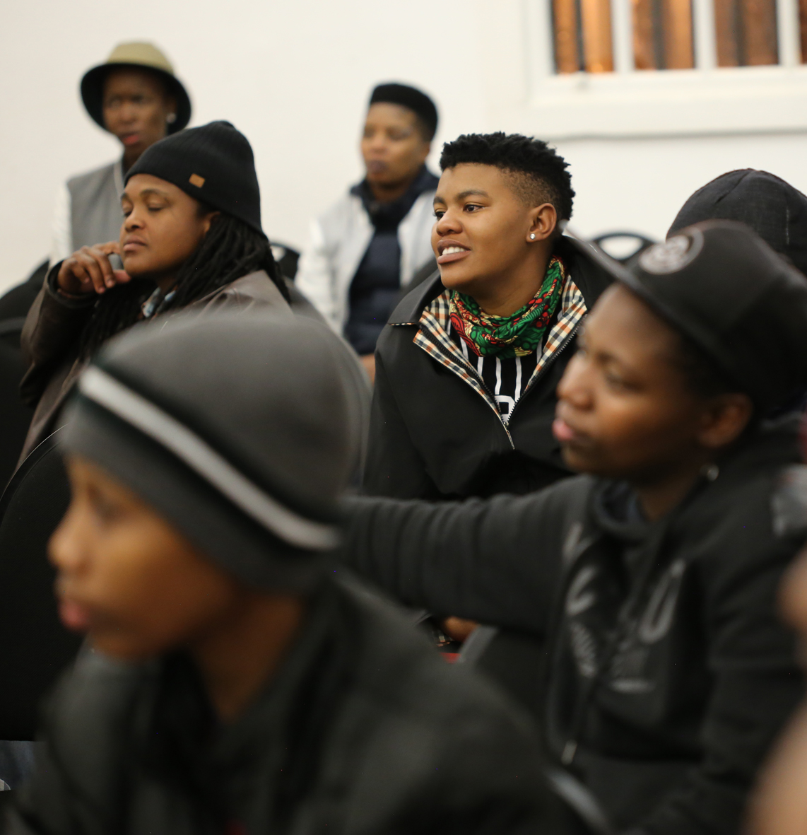 Initiator and funder, Zanele Muholi conducting one of the many intergenerational conversations as she explained how she wanted to celebrate SA 21 Years of Democracy with black lesbian youth featuring in Faces and Phases project…