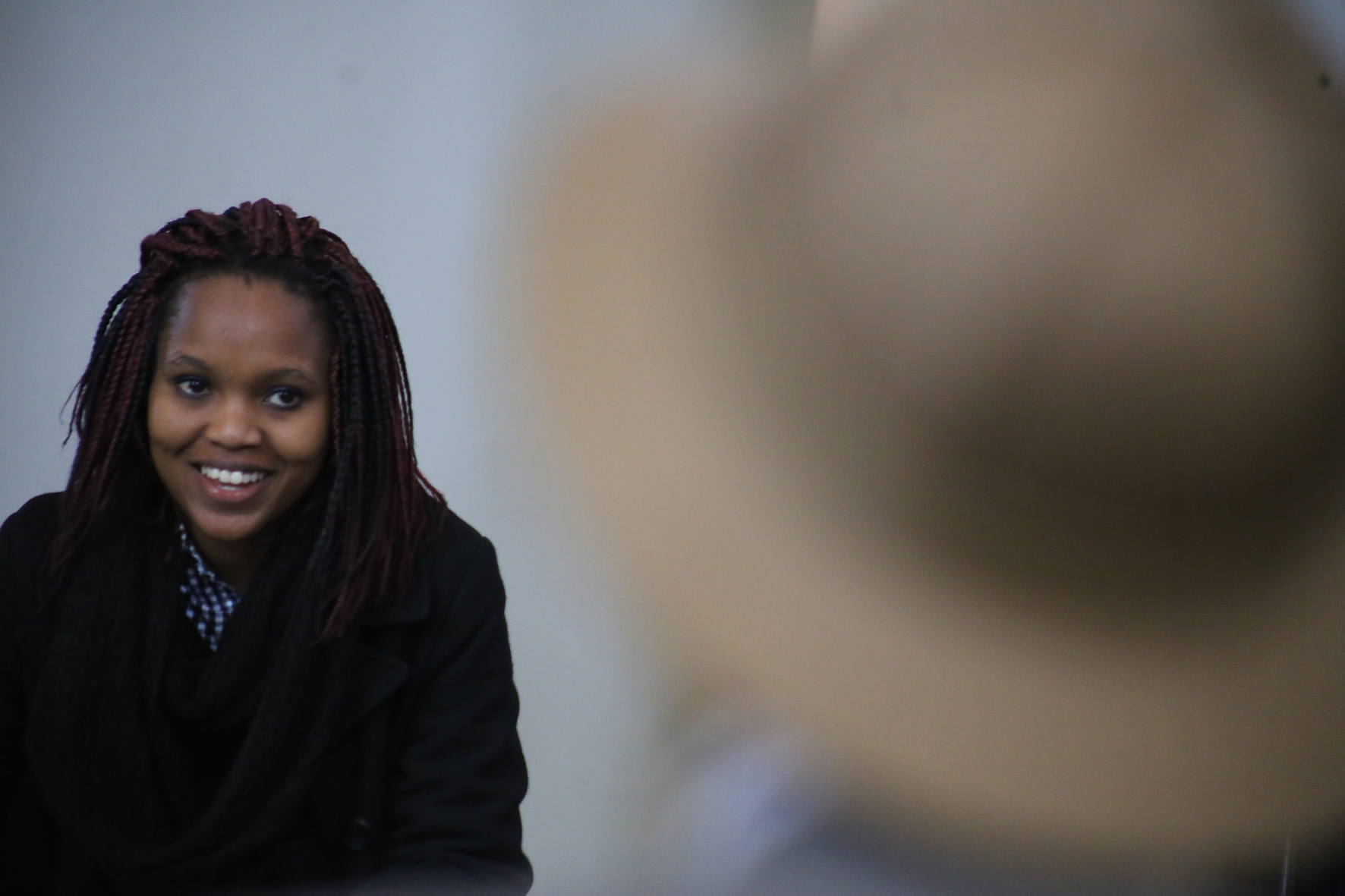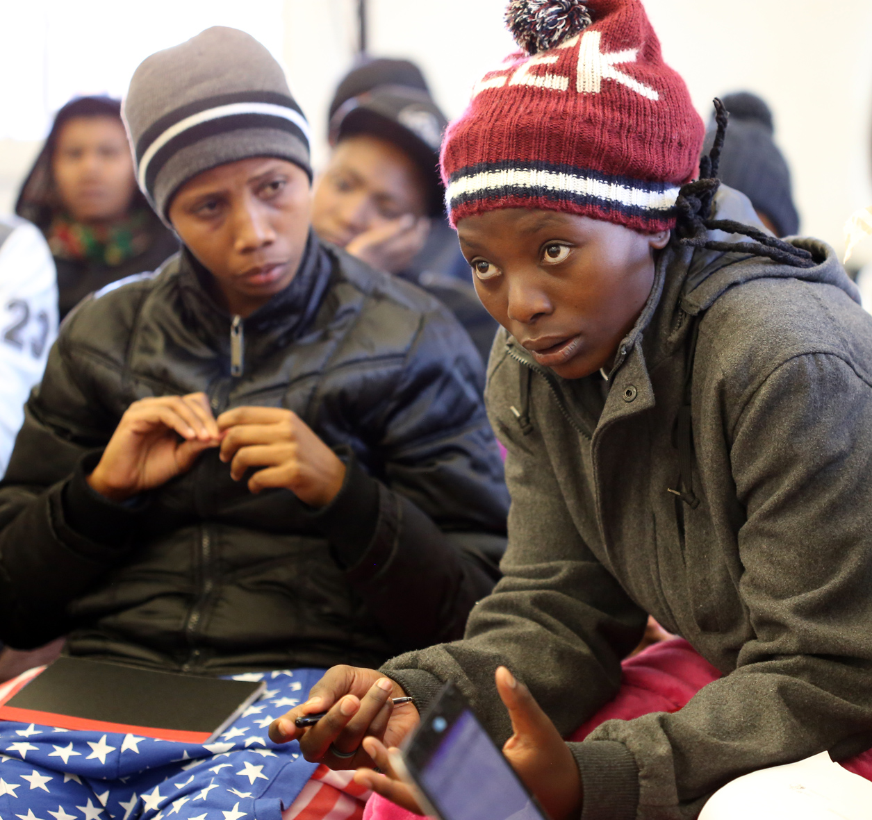 Allowing room for disruptions, Lerato Dumse invests her concentration span to the Conference, at the back is Velisa Jara from Freegender in Cape Town