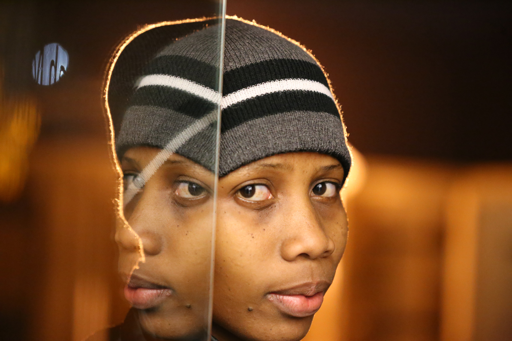 Sharon “Sicka” Mthunzi, Steve Sibahle Nkumbi, Nosiphiwo Kulati and Sebenzile “Sebe” Shabalala standing a few feet away from the Isolation cells at Constitutional Hill.