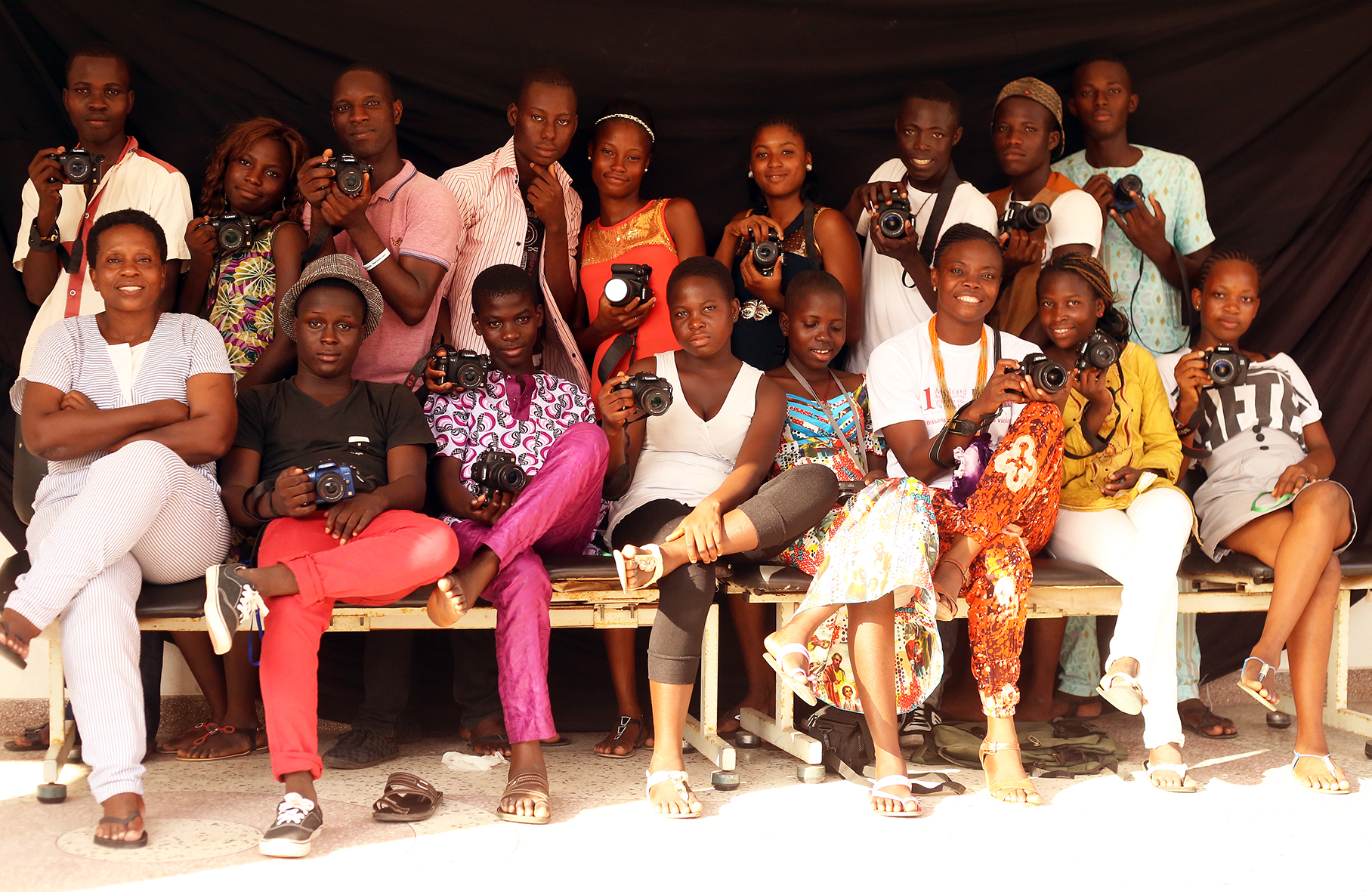 2015 Nov. 8: With youth in Cotonou, Benin, that we trained basic photo skills. Photo © Zanele Muholi/ Inkanyiso media