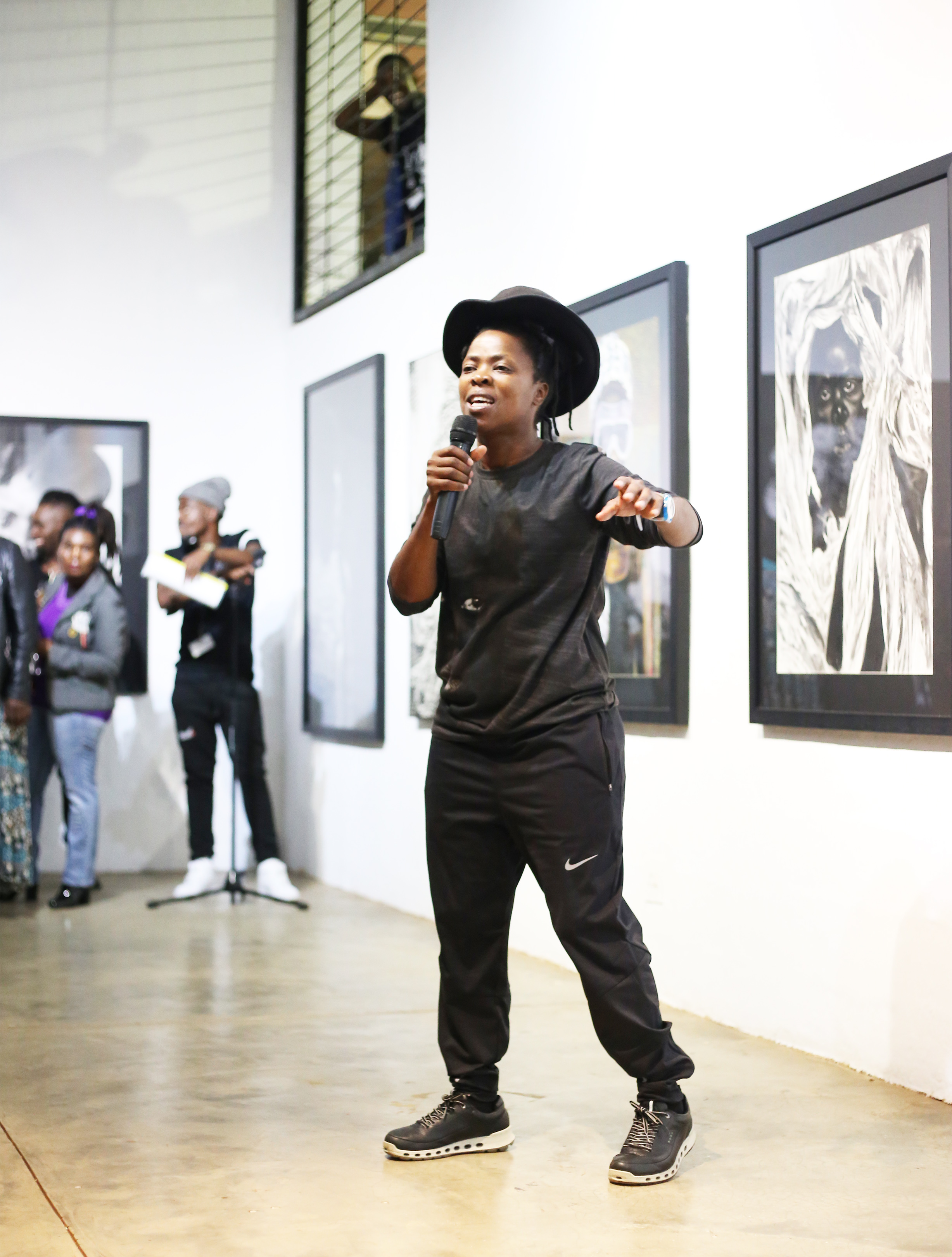 Prof. Muholi speaking during the opening of Ikhono LaseNatali © Lerato Dumse