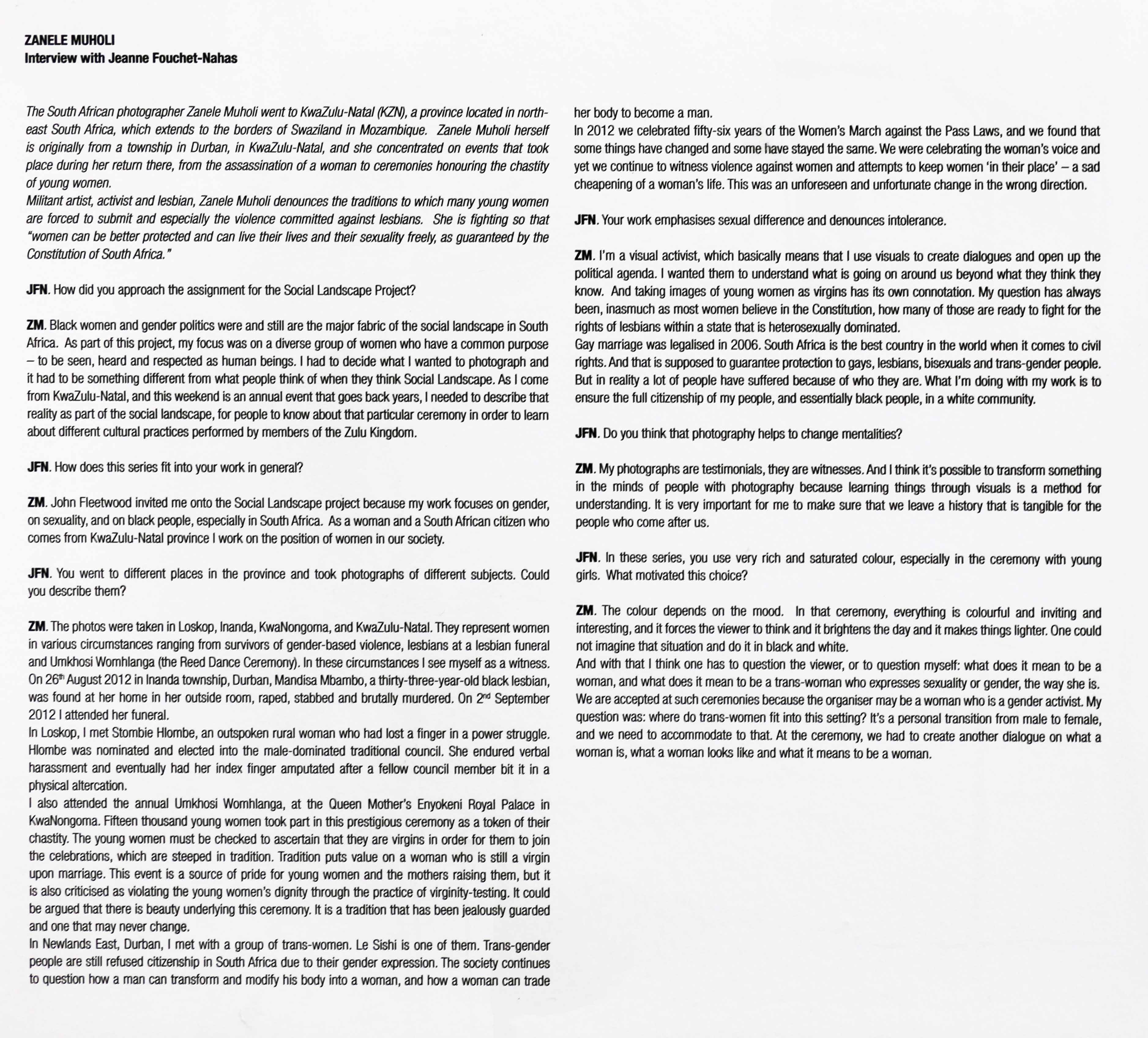Zanele Muholi once said; “she cannot give up herself and her soul simply because she needs some exposure”.