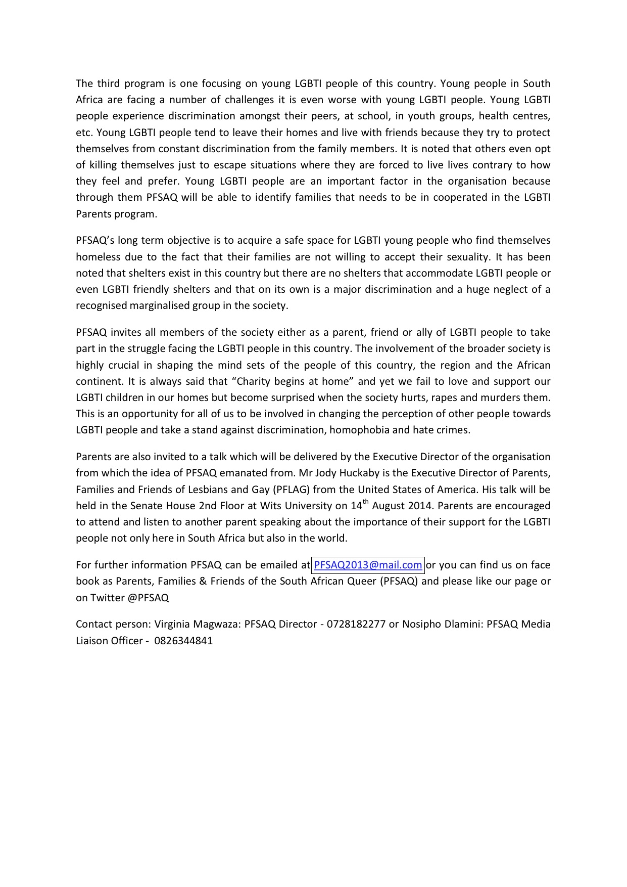 PFSAQ PRESS RELEASE