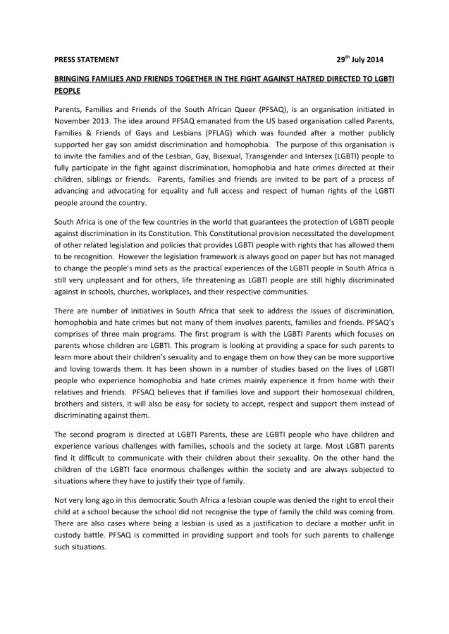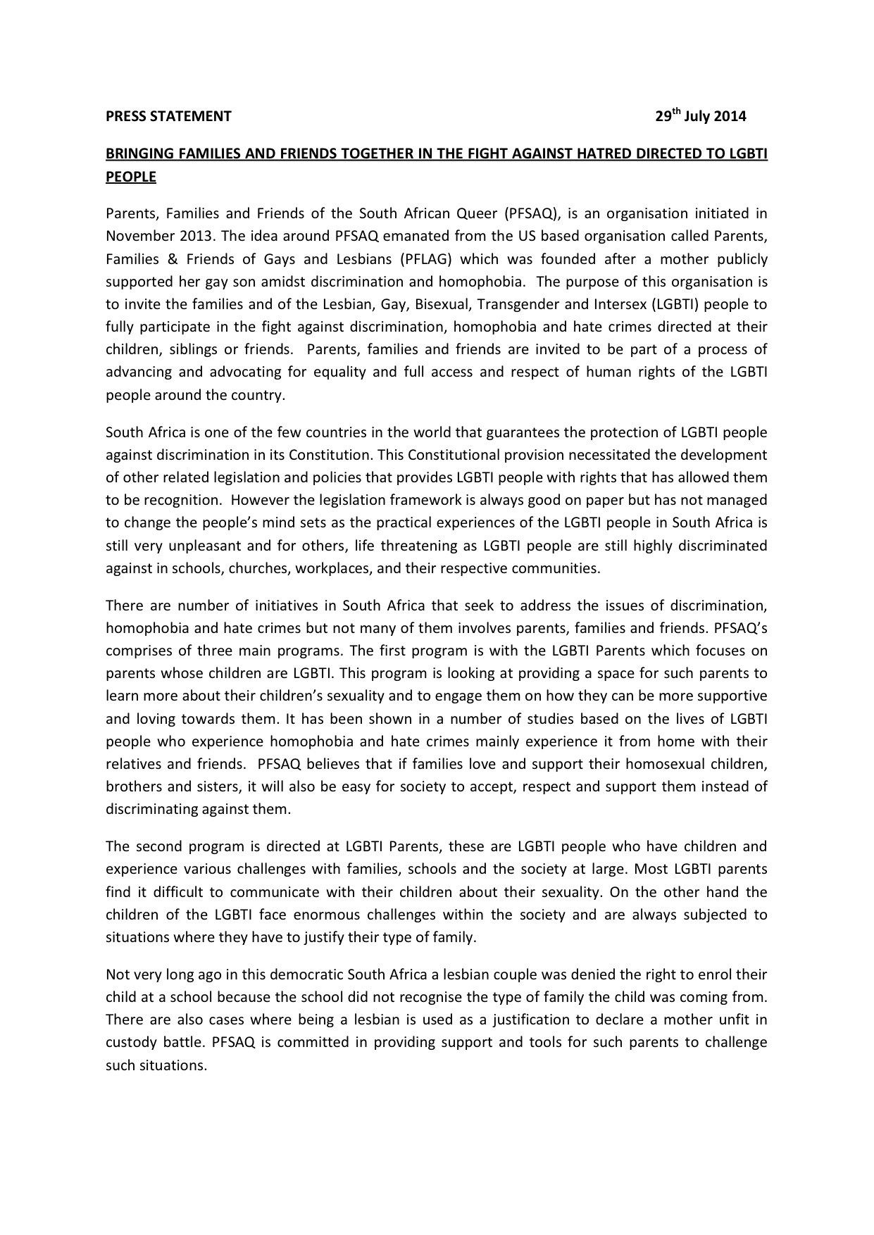 PFSAQ PRESS RELEASE